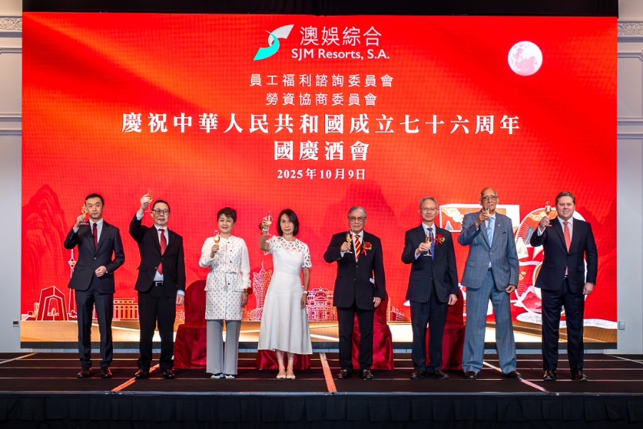 澳娛綜合度假股份有限公司(「澳娛綜合」)聯同 澳娛綜合員工福利諮詢委員會(「福諮會」)、澳娛綜合勞資協商委員會於 10 月 9 日假澳門上葡京綜合度假村上葡京禮堂舉行慶祝中華人民共和國成立 七十六周年國慶酒會。澳娛綜合董事局主席霍震霆先生、常務董事何超鳳女士、 董事兼福諮會主席梁安琪女士、勞資協商委員會顧問黃顯輝大律師,以及逾 二千名團隊成員參與,共同弘揚愛國愛澳精神。國慶酒會在莊嚴的升旗儀式中拉...