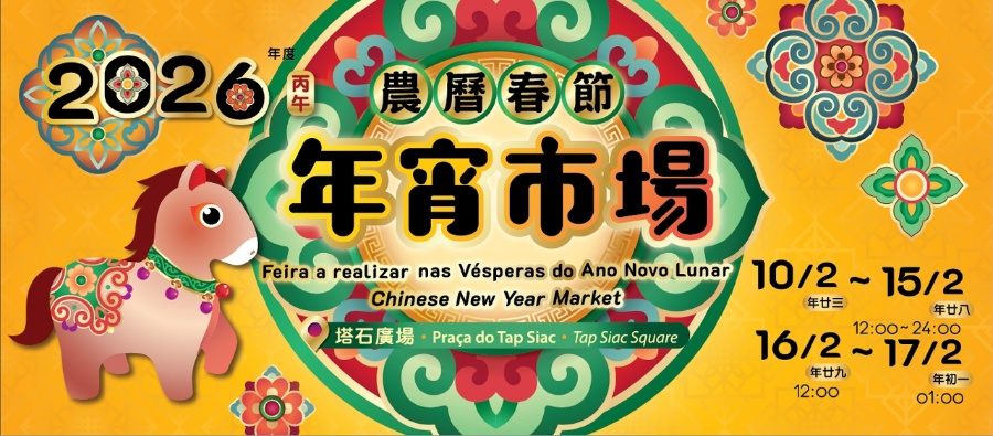 丙午馬年將至,市政署將舉辦年宵市場,並設置爆竹燃放區及售賣神香風車攤檔,與市民及遊客一起迎新歲、賀新禧。市政署呼籲活動參加者留意現場人流情況,遵從現場工作人員指示及遵守秩序。塔石年宵市場二零二六年度農曆春節年宵市場將於塔石廣場舉行,開放時間為二月十日至二月十五日(年廿三至年廿八)中午十二時至晚上十二時、二月十六日(年廿九)中午十二時至二月十七日(年初一)凌晨一時。現場將設十六個售賣賀年禮品攤檔、六...