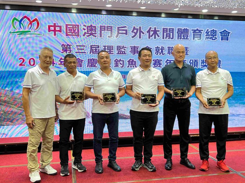 中國澳門戶外休閒體育總會今(21)晚在富豪酒店五樓舉行慶祝中華人民共和國成立七十五周年,澳門特別行政區成立二十五周年,該會第三屆理監事會就職暨二零二四年會慶及釣魚比賽年度頒獎禮,中聯辦宣傳文化部文體處處長白冰,體育局體育社團輔助處代處長陳凱風等嘉賓出席主禮。負責人勉勵全體成員再接再厲,發揚愛國愛澳的優良傳統,配合特區政府推動「旅遊+體育」融合發展,為本澳遊釣活動及休閒體育發展貢獻綿力。