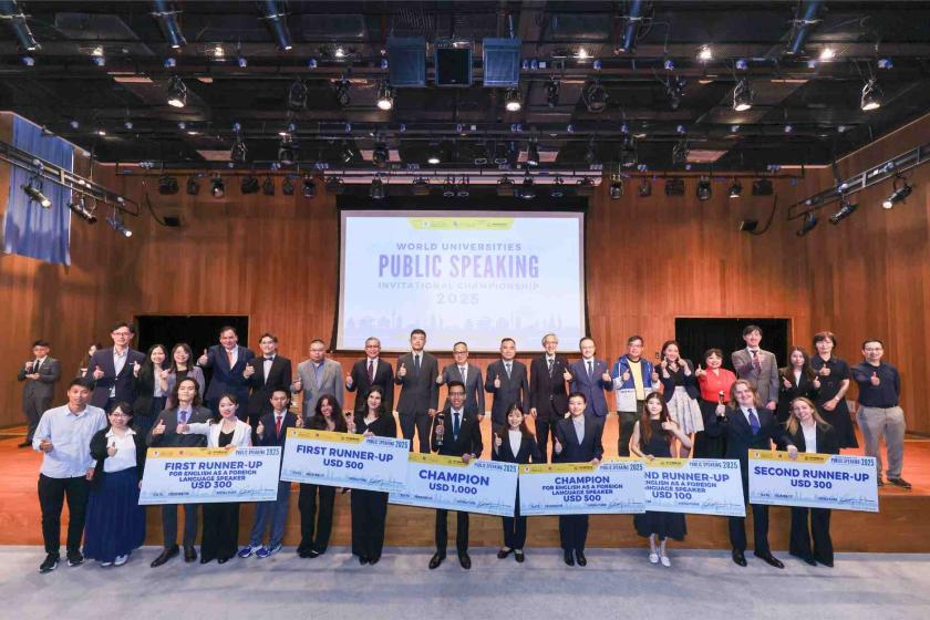 澳門大學舉辦“2025年全球大學演講邀請賽”,11位來自知名高校的英語演講精英展開精彩的競賽與跨文化交流。經國際級評判評審,最後由新加坡國立大學Kamal Ashraf Bin Kamil Jumat勇奪比賽冠軍,亞季軍則分別由加拿大英屬哥倫比亞大學Sofia Lopez Castillo及美國史丹福大學Benjamin Thomas奪得。
