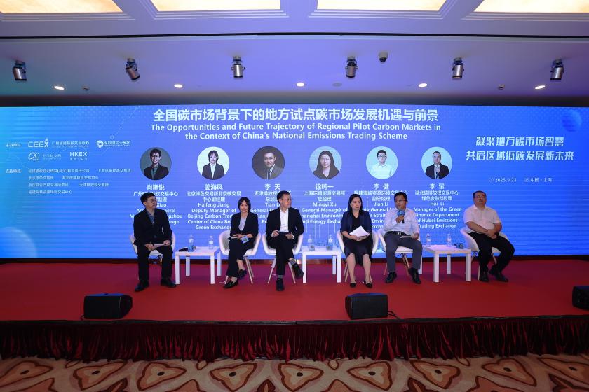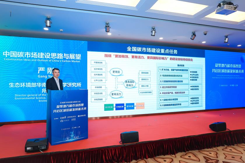 2025年9月23日下午,由廣州碳排放權交易中心、深圳綠色交易所、澳門國際碳排放權交易所及香港交易所聯合主辦的“區域碳市場創新發展研討會”在上海成功舉辦。生態環境部副部長李高出席會議並致辭。來自生態環境部有關部門和單位、相關省市生態環境部門代表,國內外碳市場交易機構和碳領域相關企業、行業協會、金融機構、技術服務機構代表,高校、科研院所碳領域相關專家學者等約160位代表參加會議,共探中國特色區域碳市場發展路徑,為全球氣候治理貢獻中國力量。