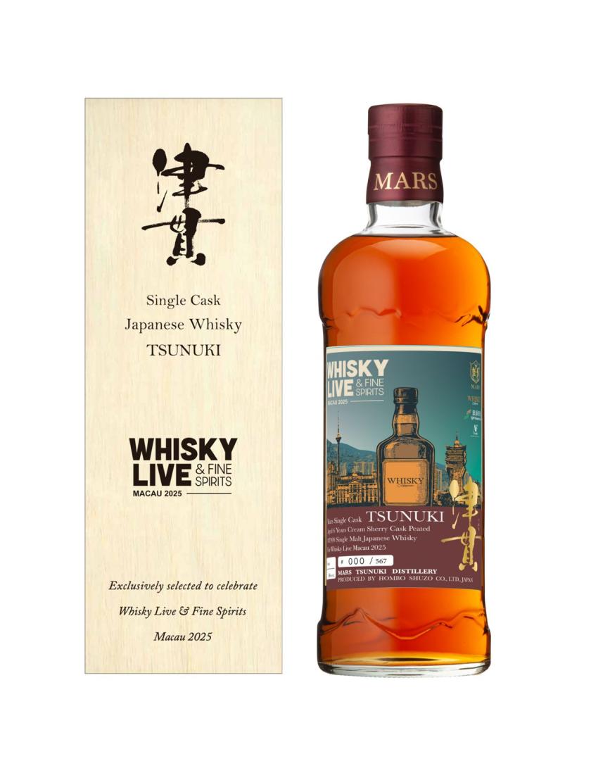Whisky Live 每年均推出多款年度限定活動酒款,今年延續傳統,由世界各地知名蒸餾所精心打造珍稀佳釀,為賓客提供獨特收藏與品飲體驗:津貫單一麥芽日本威士忌 – 澳門 Whisky Live 限定版(Tsunuki Single Cask Whisky Live Macau 2025, Aged 6 Years Cream Sherry Cask Peated, 700ml, 58% Vol),此款由津貫蒸餾所精心釀製的單一麥芽威士忌,專為 Whisky Live Macau 2025 特別推出。經六年熟成於奶油雪莉桶,並採用泥煤麥芽釀造,展現出濃烈而層次豐富的風味。口感煙燻濃郁,伴隨乾果與雪莉的絲滑甜香,餘韻悠長溫暖。700ml 限量瓶裝,彰顯匠心工藝與節日精神,是本年度活動的珍稀之選,只限連活動套票發售,限量 500 支。