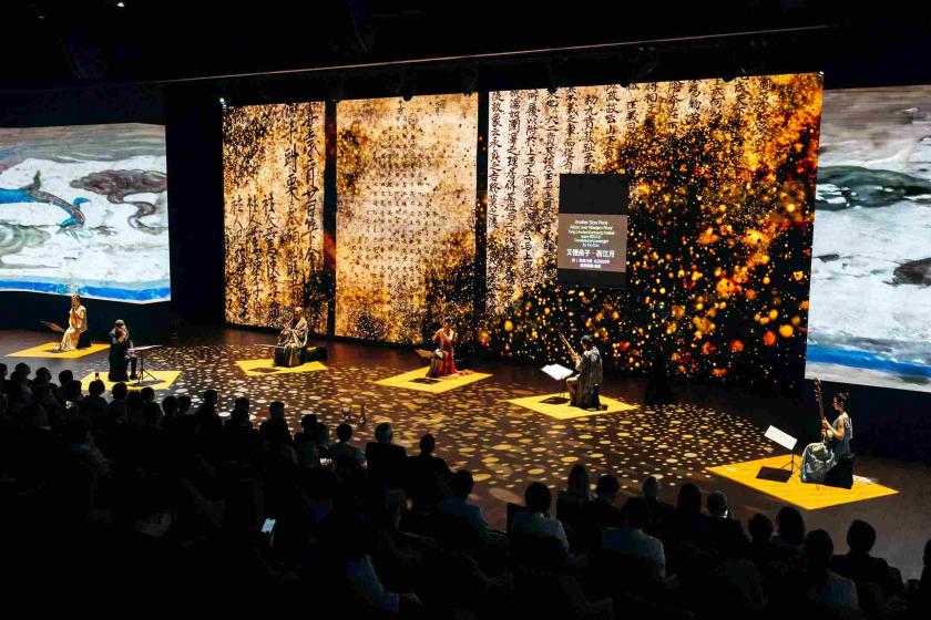 由保利美高梅博物館與聯合國教科文組織全球親善大使、國際知名作曲家及指揮家譚盾共同呈獻的《消失的藏經洞》音樂會,今日(6日)於澳門美高梅「百寶箱」完成首場演出。是次演出作為保利美高梅博物館「絲路」大展的重要延伸活動,吸引了近500位嘉賓及觀眾到場,當中包括多位本地文化、藝術及演藝界翹楚,同賞敦煌文明、共慶中秋佳節。