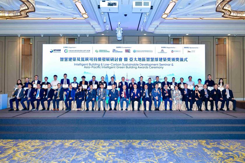 第五屆亞太地區智慧綠建築聯盟論壇(下稱APIGBA)旨在促進亞太地區建築智慧化與綠色化在學術、技術及實務經驗方面的交流與合作,其核心活動——「智慧建築及低碳可持續發展研討會暨亞太地區智慧綠建築獎頒獎儀式」今日(2025年10月22日)於美獅美高梅宴會廳舉行。本次活動由APIGBA及中國綠色建築與節能(澳門)協會共同主辦,並在招商投資促進局、郵電局、美高梅的鼎力支持下首度由澳門承辦,邀請到廣東省珠海市橫琴粵澳深度合作區城市規劃和建設局張國基局長、中國城市科學研究會綠色建築與節能專業委員會王有為主任,以及APIGBA各地區分會的代表:中國住建部智慧城市專委會委員程大章教授、香港亞洲智能建築學會主席梁以德教授、第五届亞太地區智慧綠建築聯盟論壇籌委會李建恆主席、社團法人台灣智慧建築協會理事長溫琇玲教授、韓國智慧建築協會金會瑞榮耀會長(Hway-suh Kim)、泰國住房商業公會張伯義會長(Soonthorn Sathaporn)等擔任主禮嘉賓。