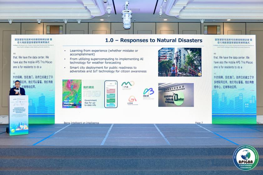 第五屆亞太地區智慧綠建築聯盟論壇(下稱APIGBA),由APIGBA及中國綠色建築與節能(澳門)協會共同主辦,於本月二十二日假美獅美高梅宴會廳舉行。論壇旨在促進亞太地區建築智慧化與綠色化在學術、技術及實務經驗方面的交流與合作,其核心活動——「智慧建築及低碳可持續發展研討會暨亞太地區智慧綠建築獎頒獎儀式」。