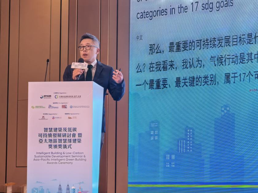 本次論壇有來自亞太地區的行業專家、學術界及企業代表等過百人參與,通過獲獎作品分享及專題演講,共同探索智慧綠色建築的最新趨勢和技術方向。在論壇上,中國綠色建築與節能(澳門)協會理事長李加行以“用智慧引領智慧"為題作演講,探討在智慧城市迅速發展的浪潮下,如何平衡科技迅猛發展與潛在風險,對構建具韌性、可持續的城市提出一些思考。