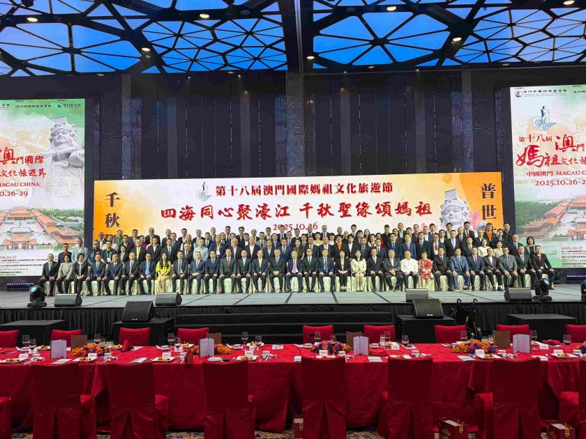 由澳門中華媽祖基金會主辦,湄洲媽祖祖廟董事會協辦,澳門基金會贊助的 “第十八屆澳門國際媽祖文化旅遊節開幕式暨乙巳年媽祖祭典”,將於明早十時在媽祖文化村舉行。活動組委會今晚在澳門銀河會議中心宴會廳舉行歡迎宴會,與來自內地、臺灣及 “一帶一路” 沿線國家的宮廟代表等千餘名海內外嘉賓歡聚一堂,以媽祖之恩澤,連結兩岸同胞情感,促進心靈契合,共同構建中華民族偉大的精神家園。