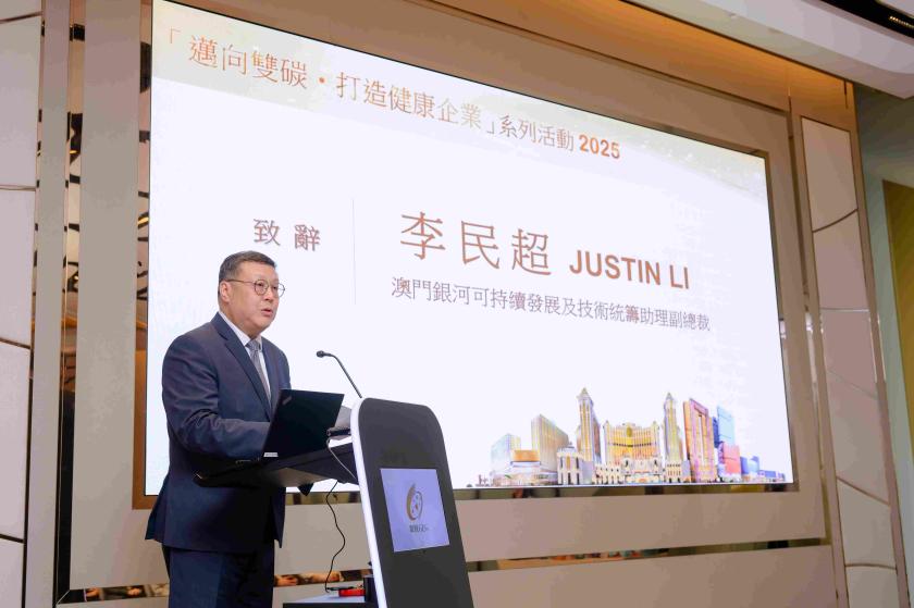 銀河娛樂集團積極響應國家「雙碳」目標及澳門特區政府環保與職安健方針,持續透過多元方式向不同群體推廣綠色健康理念。為進一步向團隊成員及社區大眾貫徹相關知識,銀娛推出「邁向雙碳・打造健康企業」2025系列活動,獲澳門特區政府環境保護局(下稱「環保局」)、衛生局支持。系列活動橫跨5個月,自今年6月以來推出包括面向團隊成員的綠色食譜設計比賽、宣導節能的推廣攤位,以及深化衛生局之「健康企業計劃」的相關健康推廣活動;同時亦支持由環保局舉辦的多場「綠色之旅」酒店參訪活動。日前,系列活動的壓軸主題日暨「綠色健康新『煮』意」食譜設計比賽頒獎典禮(下稱「主題日」)於銀河國際會議中心舉行,進一步向團隊成員展現銀娛在綠色健康企業文化方面的積極實踐與成果。