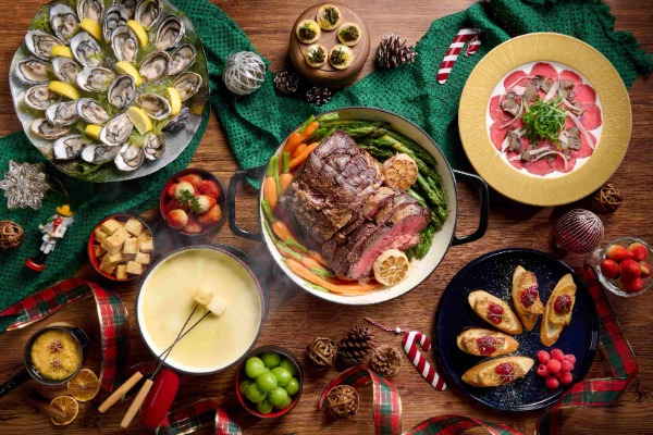 歡聚節慶自助餐將於2025年12月1日至23日、12月26日至30日及2026年1月1日供應,賓客於2025年12月14日前預訂平安夜及聖誕節晚餐,或於12月21日前預訂除夕晚餐,可尊享八折優惠。