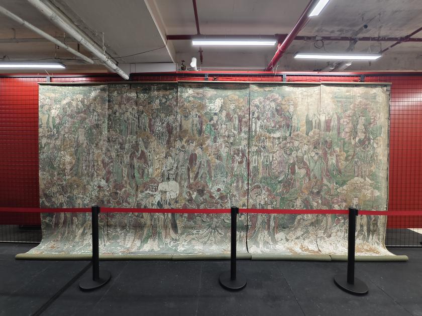 毗盧寺位於河北省石家莊市,始建於唐天寶年間,寺內的明代壁畫是中國古代繪畫瑰寶,現存壁畫面積約200平方米,毗盧殿的水陸畫刻畫了500餘個人物形象,內容涵蓋儒、釋、道三教人物及佛傳故事。這些壁畫承襲吳道子畫派遺韻,以“吳帶當風”的線描為基礎,融入元明工筆細膩技法,使用朱砂、石綠等礦物顏料,色彩歷經數百年仍鮮豔奪目。據悉,在澳門舉辦後,展覽還將移師香港,繼續在粵港澳大灣區內傳播中華優秀傳統文化的璀璨光芒,用藝術連古通今,續寫文明交流互鑒的新篇章。
