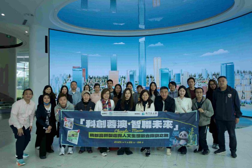 由澳門國際科技產業發展協會主辦、澳門基金會贊助的「科創蓉澳,智聯未來」成都高新製造與人文生態融合探索之旅,於昨日(11月25日)上午啟程。該會會長李彩红擔任團長,澳門現代文化教育促進會會長曲強奎和澳門商鋪互助會理事長盧敏燕任副團長。交流團匯聚了來自澳門科技界、教育界、商界人士,一行25餘人開啟為期四日三晚的考察交流。