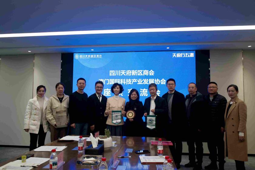 在蓉期間,交流團行程緊湊而充實。首日,行程聚焦科技創新實踐場景,由中化現代農業四川公司黨支部書記王文彬帶領交流團先後參訪了交子公園金融商務區、新經濟活力區、中科源碼機器人研究院等地,深入了解國家級新區四川天府新區在金融科技領域的創新發展。次日,交流團在四川天府新區黨工委黨群工作部常務副部長姜明茂,全國人大代表、四川天府新區商會會長王麒的全程陪同下,參觀天府新區規劃廳及四川製造業智改數轉平台,實地考察天府新區在產城融合規劃,以及人工智能、工業互聯網及數字化等前沿新技術在傳統製造業轉型中的標竿案例。在隨後召開的座談會上,雙方圍繞推動蓉澳兩地在產業協同、技術創新、人才培養及項目對接等方面的交流合作,展開了深入對話。王麒表示澳門具有一國兩制優勢,期望通過該會把前沿科技項目引進澳門。通過一系列參觀考察,交流團成員們對天府新區在科技創新、產業發展和人文生態建設方面的卓越成就留下了深刻印象,尤其對四川以「智改數轉」行動培育新質生產力的系統性舉措表示高度認可。