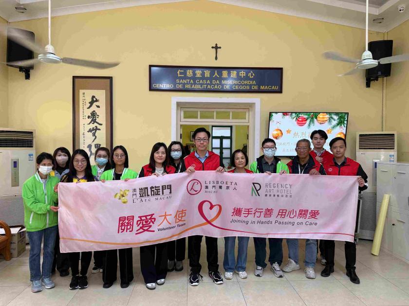 為持續秉承企業社會責任,落實推動社區關愛精神,澳門葡京人、澳門凱旋門及麗景灣藝術酒店聯合組織「關愛大使」團隊成員於 11 月 27 日再度探訪澳門仁慈堂盲人重建中心,延續去年建立的深厚情誼,展現三間企業履行企業社會責任的堅定承諾,並藉由恆常的公益行動推動社區共融,讓愛心在社會間持續傳遞。