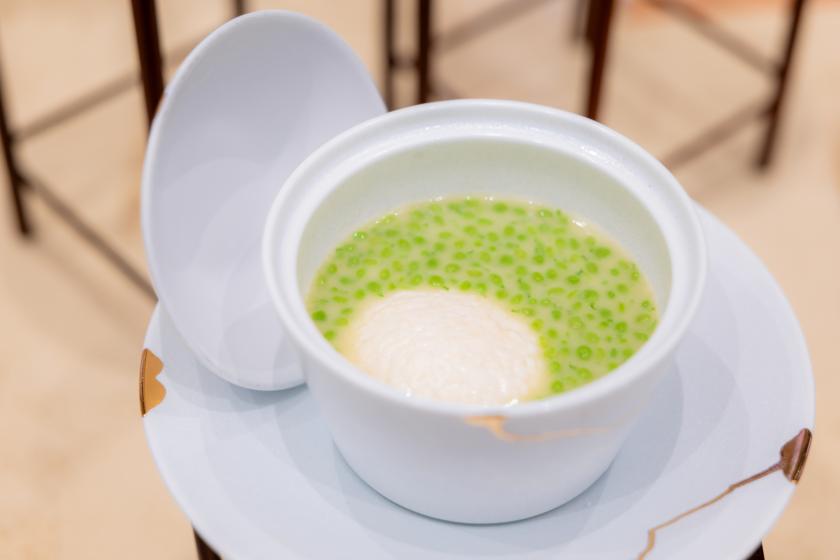 白玉黃魚獅子頭以蘇幫淮揚傳統技法為基礎,選用澳門本地黃魚入饌,魚肉鮮與肉丸嫩交織,形若 “眼玉貞器”,既保留江南菜的細膩,又啟動澳門海產鮮活,詮釋 “錫澳共釀” 匠心;