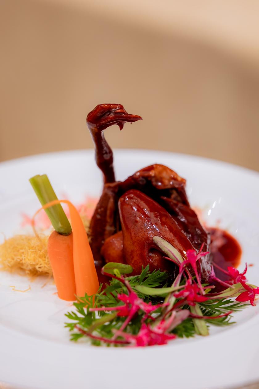 琥秋醬香乳鴿巢則以無錫經典醬香為核心,搭配澳門特色乳鴿,輔以秋日時令食材點綴,醬汁濃郁醇厚、乳鴿皮脆肉嫩,盡顯 “舌尖上的秋日詩會” 韻味。正如賽事主題詩所詠 “一湯一醬皆風韻,錫澳同烹秋味長”,兩款菜品既是無錫美食底蘊的展現,也是兩地風味創新融合的實踐。
