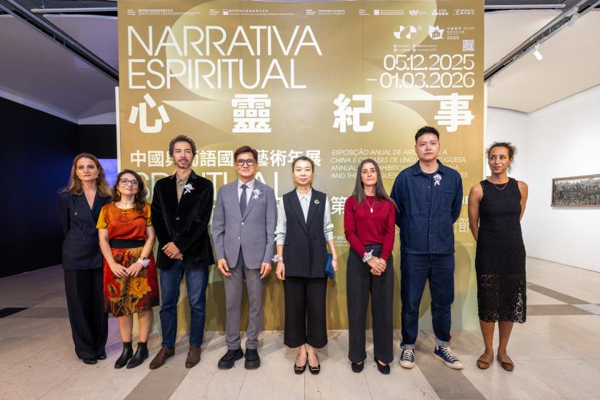 由文化局主辦的“心靈紀事──2025中國與葡語國家藝術年展”昨日(12月4日)於氹仔龍環葡韻風貌館開幕,中央人民政府駐澳門特別行政區聯絡辦公室宣傳文化部副部長白冰、文化局副局長鄭繼明、東方葡萄牙學會葡萄牙語中心主任Paula Costa、年展承辦單位代表蘇約翰、多位參展藝術家及本地文化藝術界人士出席。