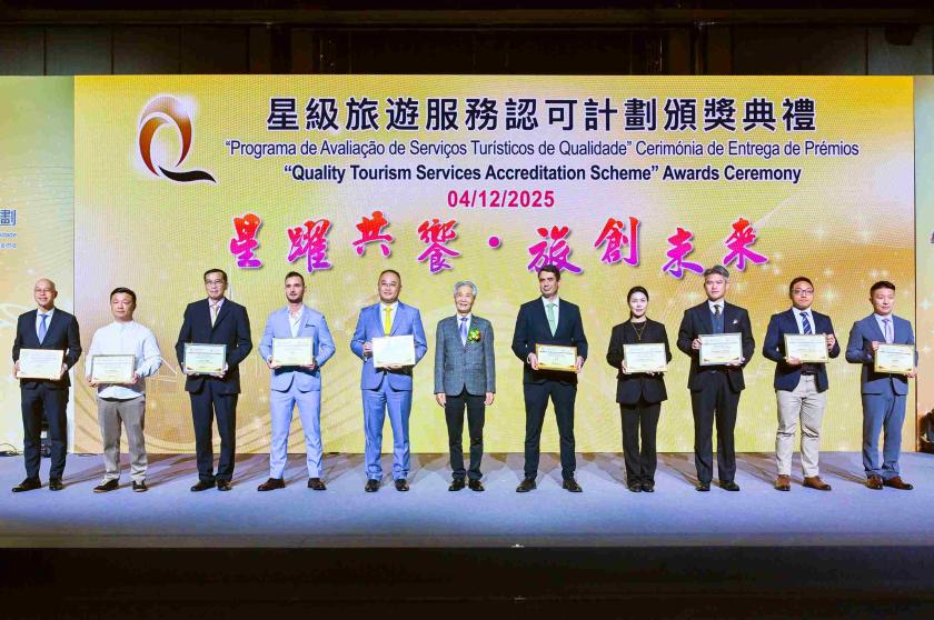 本年度「星級旅遊服務認可計劃」吸引逾300間餐飲商戶參與,競爭激烈。經過兩次神秘顧客服務評核和一次服務管理體系審核的全方位評審,「BROWN & FRIENDS CAFE & BISTRO」憑藉優質的服務品質、專業的營運管理及嚴格的品質監控等方面的綜合表現,獲得評審的高度肯定,成功獲得「星級旅遊服務商戶獎」殊榮。澳門葡京人餐飲部副總裁朱沛根先生在12月4日出席頒獎禮並接受獎項。