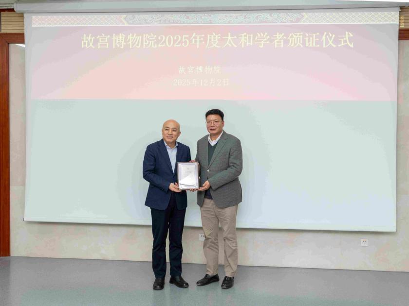 12月2日下午,故宮博物院院長王旭東向港澳地區首位太和學者趙強博士頒發證書。趙強向與會專家學者分享了克拉克瓷與汕頭器研究成果,院長王旭東、副院長王躍工聆聽了趙強的講座。