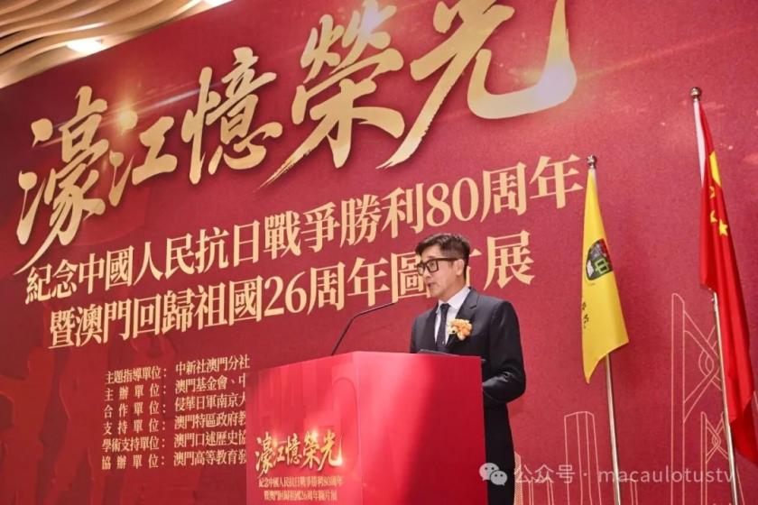 吳志良致辭指出,抗戰時期,澳門同胞與全國人民風雨同舟、休戚與共,通過多種方式,為抗戰勝利作出獨特貢獻。希望社會各界持續講好澳門抗戰歷史故事,照亮人類文明前行道路。