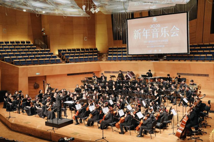 為紀念中華人民共和國抗日戰爭勝利80週年,澳門青年藝術家協會、香港聯校音樂協會、仁樂會與瀋陽廣播電視台青少年交響樂團於12月23日在瀋陽盛京大劇院「2026新年音樂會」聯袂獻演多首中西方古典曲目,活動吸引逾千人到場。