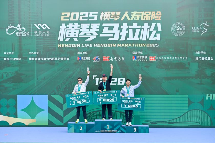 經過激烈角逐,2025橫琴馬拉松男子組冠軍由朱家林以02:25:38的成績奪得,崔家樂、萬磊分別以02:25:52和02:26:43的成績獲得亞軍和季軍。