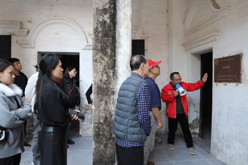 活動的最後一站是倉東文化保育基地,這裡迎來了開平市倉東文化遺產保育與發展中心負責人沈益民先生和五邑大學譚金花教授的熱情接待。沈益民帶領大家參觀了倉東村的各個角落,詳細介紹了倉東村的歷史變遷、建築特色以及文化傳承情況。