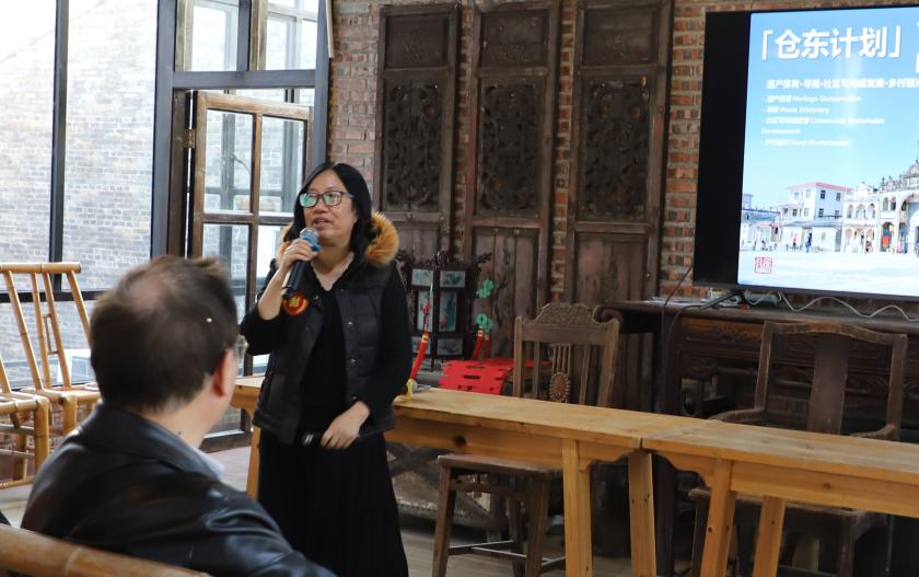 隨後,眾人與五邑大學譚金花教授展開了熱烈的討論,譚教授長期致力於文化遺產保護、華僑歷史及僑鄉研究,她主導的“倉東計畫”在國內外文化遺產保護領域聲名遠揚。