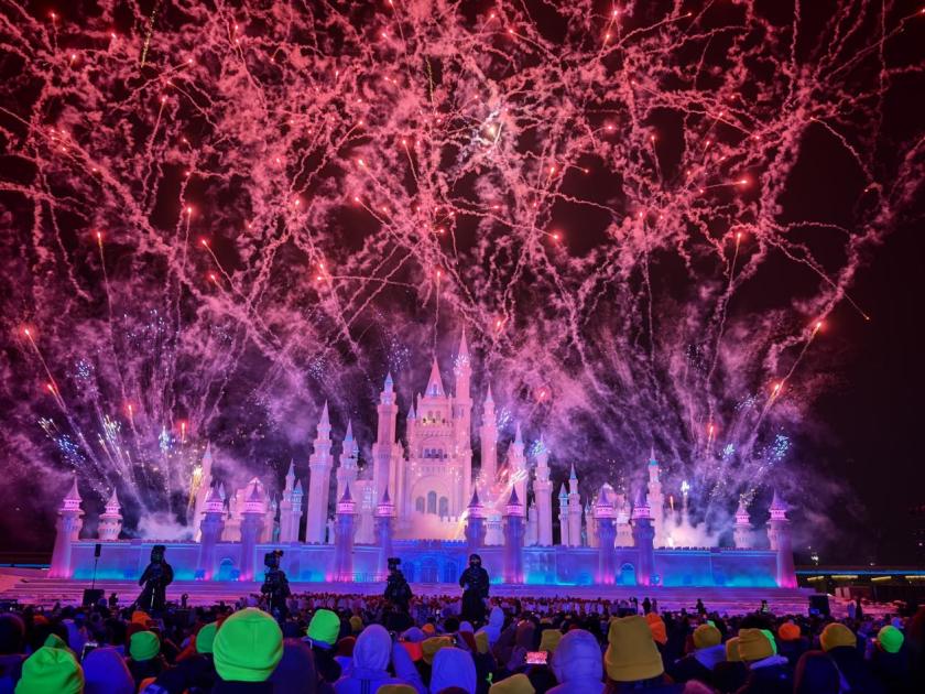 1月6日晚,長春肆季南河,第十二屆全國大眾冰雪季開幕現場。