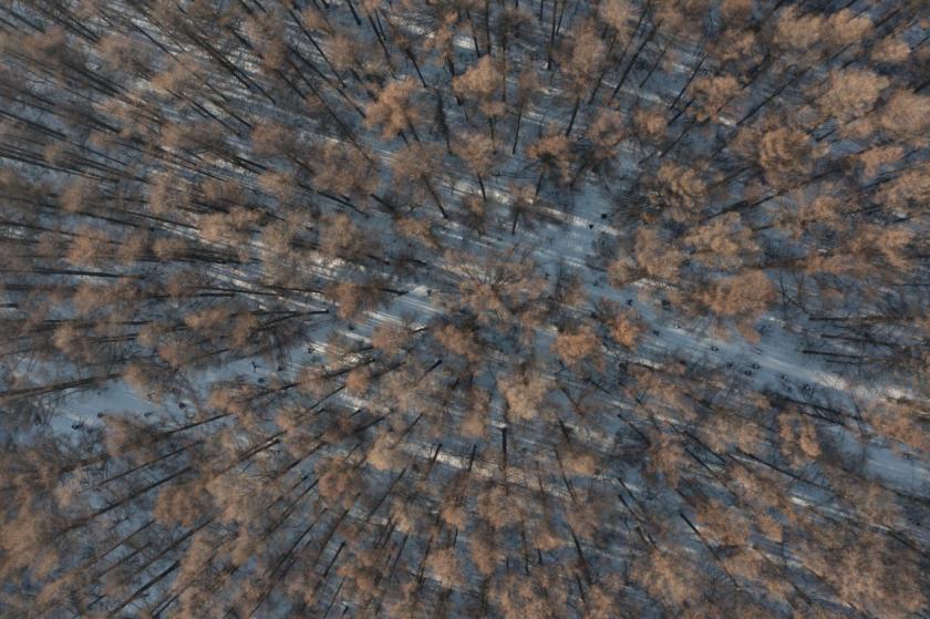 長春淨月潭瓦薩滑雪節,選手穿越林間。