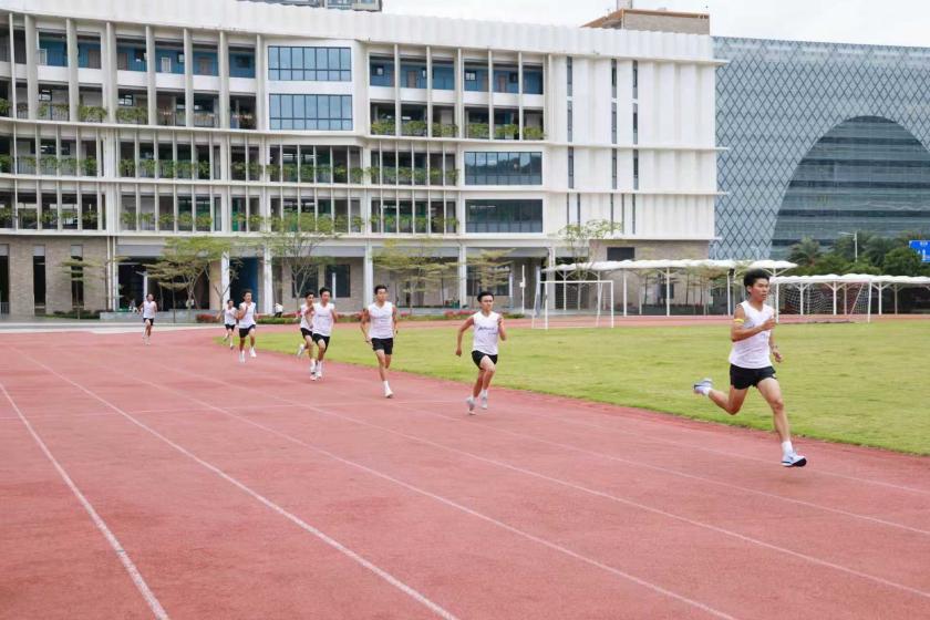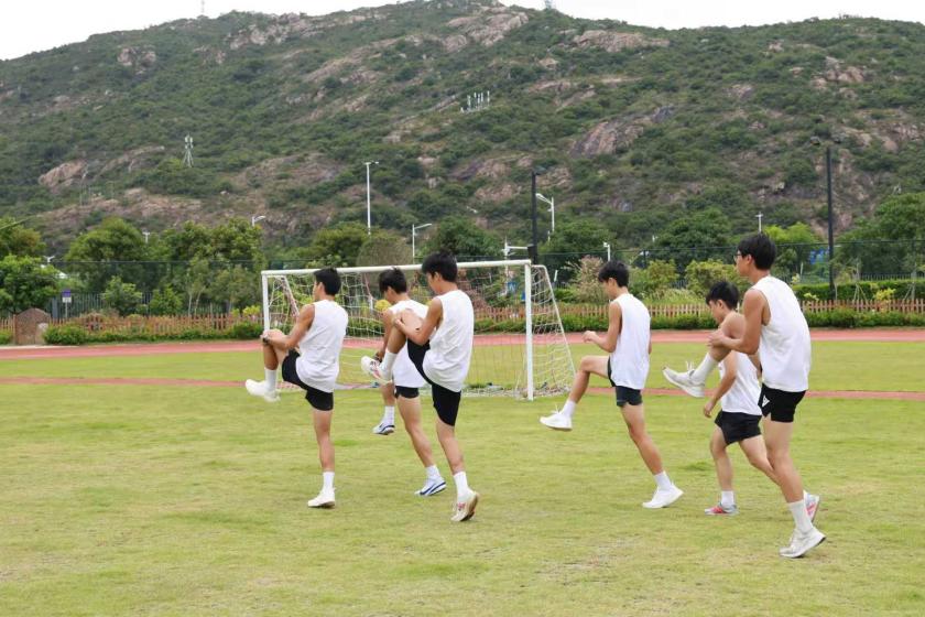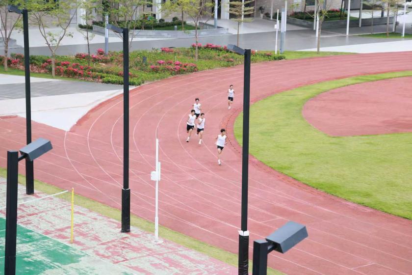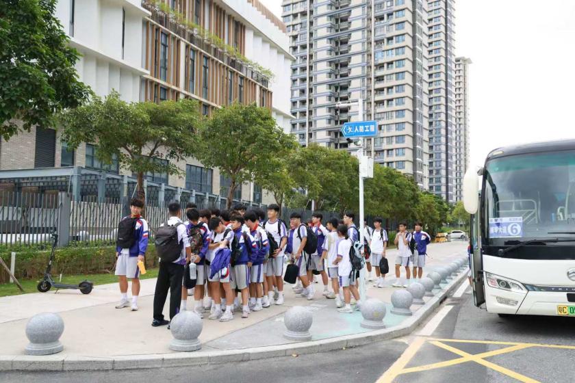 通勤路上,學生需在 12:40 從培華中學下課後,緊凑銜接步行、輕軌、接駁車、過關等多段行程,14:00抵達子期學校。即便遇到過關人流高峰或突發情况,師生們始終保持昂揚狀態,這份堅韌不拔的精神貫穿教學全程。而當踏入子期學校的標準塑膠跑道、真草足球場與室內籃球場時,所有疲憊都化爲訓練熱情 —— 完善的運動設施爲專業訓練提供了優質保障,學生們在全新教學環境中積極投入,戰術配合、技能打磨的積極性顯著提升,教學質量得到實質性飛躍。