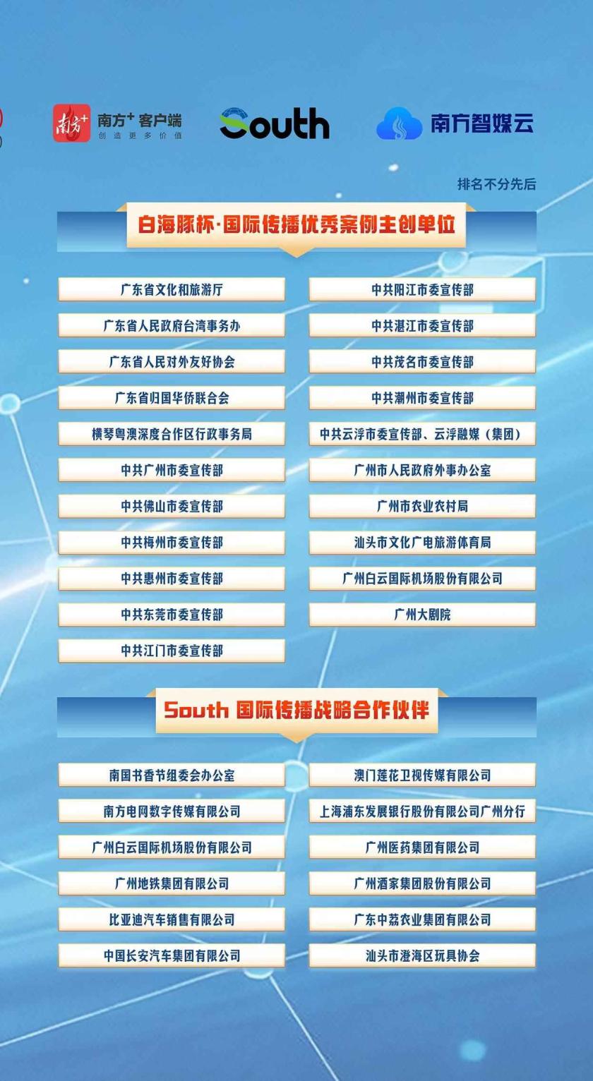 據瞭解,South國際傳播平台不僅是一家專業的國際傳播媒體,更為廣東各級政府部門、企事業單位、媒體及高校的涉外工作提供堅實支撐,已成為地區、城市、企業塑造國際品牌形象、開展國際傳播的核心合作夥伴。為表彰在國際傳播領域作出突出貢獻的單位與機構,南方國際傳播研究院聯合中山大學、華南理工大學、暨南大學、廣東外語外貿大學國際傳播研究基地等國內知名科研機構,推出首屆「白海豚杯國際傳播案例」評選活動,現場揭曉並頒發了2025年度白海豚杯·國際傳播優秀案例、2025年度國際傳播戰略合作夥伴兩項榮譽。