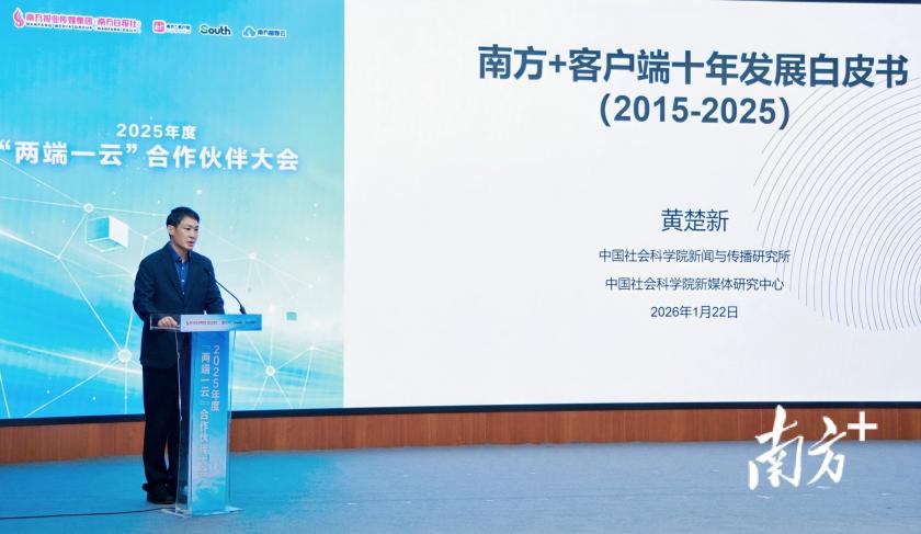 大會期間,《南方+客戶端十年發展白皮書》正式對外發布。中國社會科學院大學新聞傳播學院副院長、中宣部主流媒體系統性變革課題組成員黃楚新受邀出席,對白皮書進行了深度解讀,詳細梳理了南方+客戶端穿越十年發展周期,在主流媒體系統性變革浪潮中創新突破、進位升階的發展脈絡與核心密碼。