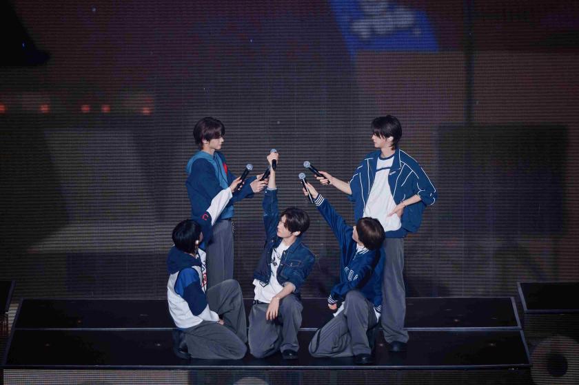 最窩心是拍攝大合照時,全場粉絲一起高舉應援手幅,美得讓TWS忍不住大讚:「漂亮漂亮,謝謝!」而拍完第一張大合照之後,在拍攝第二張時又特地預留了JIHOON的位置,談到這一次他雖然不可以來澳門參加,但是也要留個位置給他,可見TWS成員間的深厚感情。