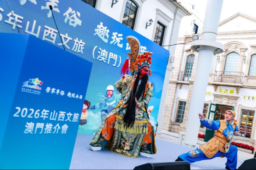 志合越山海,聚力共前行。1月26日下午,澳門漁人碼頭勵駿廣場內晉韻悠長,鼓樂鏗鏘。以“晉享年俗 趣玩山西”為主題的2026年山西文旅推介活動在此隆重舉行,為澳門各界帶來一場沉浸式的三晉文化盛宴。活動旨在深化晉澳兩地文旅交流與合作,向澳門同胞展示山西豐富的年俗文化與冬季旅遊資源,吸引更多港澳遊客親身感受華夏古文明的獨特魅力。