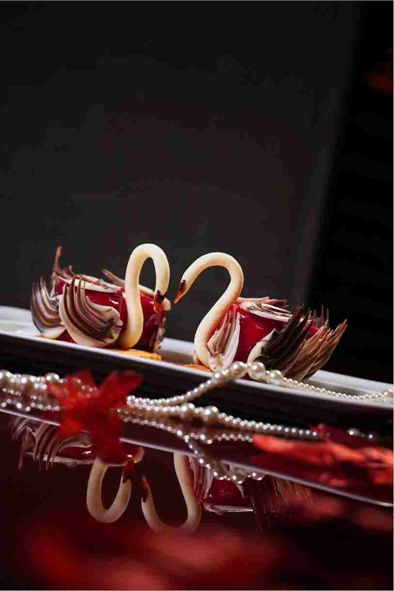 另一道「烤牛柳配椰菜泥、炒蘑菇及蘆筍」則彰顯精緻,牛柳鎖汁入味,搭配清爽配菜,營造均衡口感;壓軸甜品「黑白朱古力天鵝芝士蛋糕」,濃郁芝士混合黑白朱古力的醇厚與香甜。
