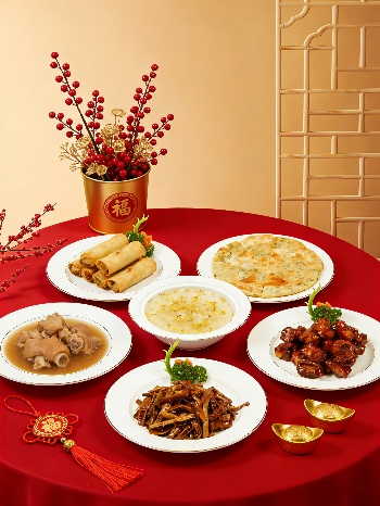 作為酒店經典中式餐飲板塊,梓園上海菜館以本幫菜特色為基礎,打造多款新春佳餚。其中「上海盆菜宴」融合滬菜「濃油赤醬」風格與粵式盆菜的團圓寓意,精選十八款優質食材,包括海參、鮑魚、花膠等海味,搭配燻魚、元蹄、鴨舌等經典滬式菜品,輔以中蝦、冬菇、年糕等節慶食材,全部採用秘製老火湯底慢燉,香氣醇厚、層次豐富。盆菜宴可提供堂食與外賣兩種選擇,並搭配滬式小食、前菜、主食及甜品,適合家庭團聚共享。