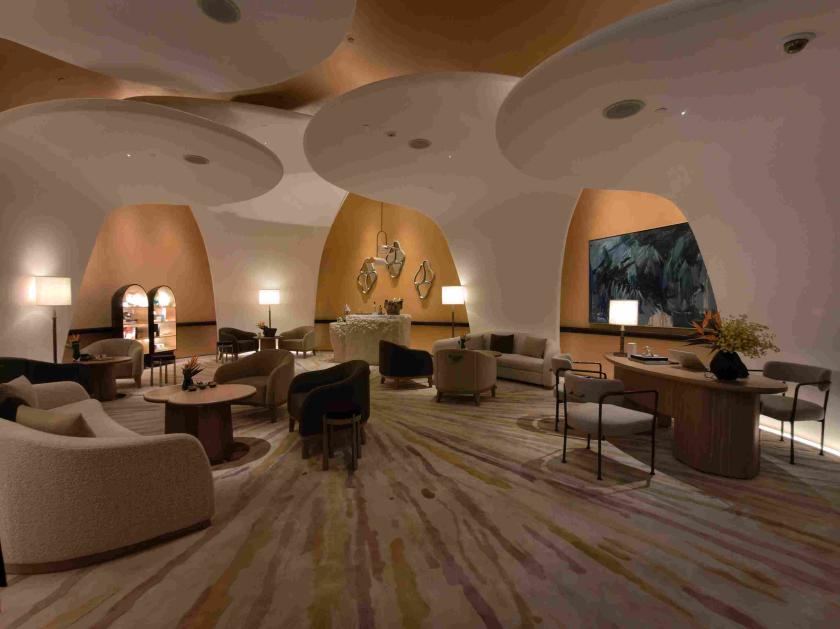 MoinardBétaille建築及設計事務所受托為澳門銀河嘉佩樂創造「澳門的府邸式雅居」:從地下大堂如林冠般的設計及象徵生命之樹的裝置,到藝術家張文盈創作的多感官數碼藝術,設計大師BrunoMoinard以其巧思構築出一個靜謐、奢雅且充滿從容氣度的環境。張文盈亦同時將手工完成以受叢林啓發的牆面點綴每間套房。而於澳門銀河嘉佩樂這個項目中,BrunoMoinard與其創意夥伴ClaireBétaille再次延伸他們對訂製奢華的共同追求,創造出一套全新的設計語彙,以獨特而優雅的方式詮釋文化、社群、傳承與歷史,既具識別度,又歷久彌新。Moinard大師表示:「我們的願景,是營造一種平靜、精工細琢的優雅、一處座落於『澳門銀河』這片非凡之境的府邸式雅居,容讓親密與永恆共存。」