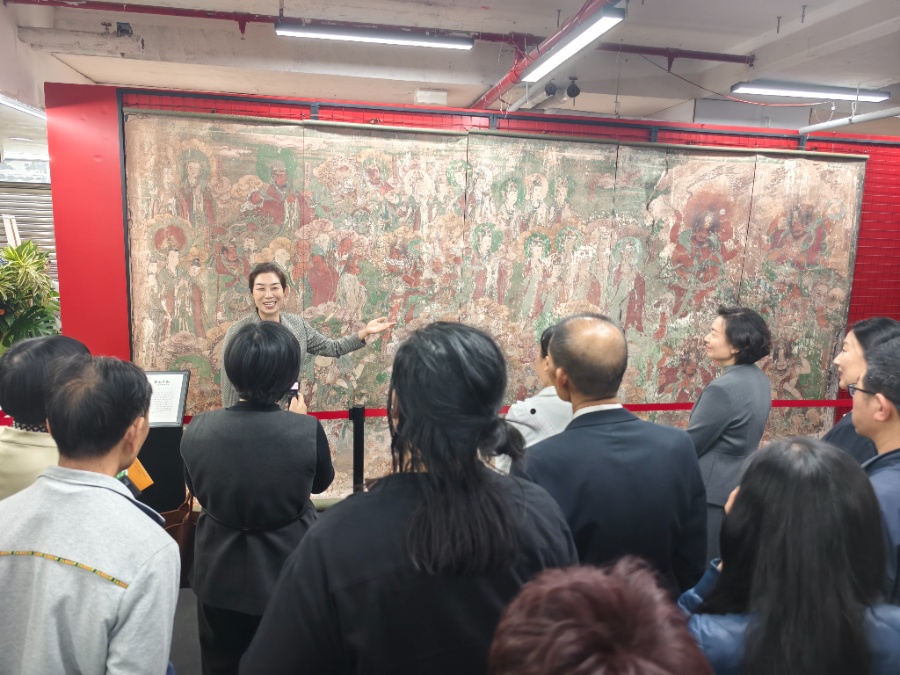 11月26日上午11點,“壁上千秋——毗盧寺壁畫藝術展”在澳門半島白馬行4號銀座廣場3樓展出,石家莊市文化廣電和旅遊局黨組書記張惠、石家莊毗盧寺博物院院長高露歌、澳門文化推廣協會理事長丁瀟、澳門民間藝術珍藏協會會長李明仔、澳門網路視聽協會視頻專委會主任、澳門網路傳播協會副理事長李秀陽等嘉賓領導蒞臨參觀。 展覽現場,專業團隊運用數位化技術複製的毗盧殿壁畫複刻畫作展出,精准還原了壁畫的筆觸與...
