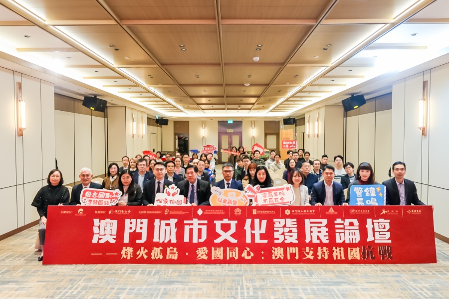 為紀念中國人民抗日戰爭暨世界反法西斯戰爭勝利80周年,由暨南大學澳門校友會主辦,澳門基金會贊助的“澳門城市文化發展論壇──烽火孤島•愛國同心:澳門支持祖國抗戰”,今天假萬豪軒佳宴舉行,吸引近百人參加。活動由鏡湖醫院、澳門中華新青年協會、澳門中華學生聯合總會、澳門青年智庫、澳門發展策略研究中心、澳門婦女聯合總會、澳門街坊會聯合總會、澳門朝陽學會、學新社、朝陽學會支持。暨南大學澳門校友會劉本立執行會長...