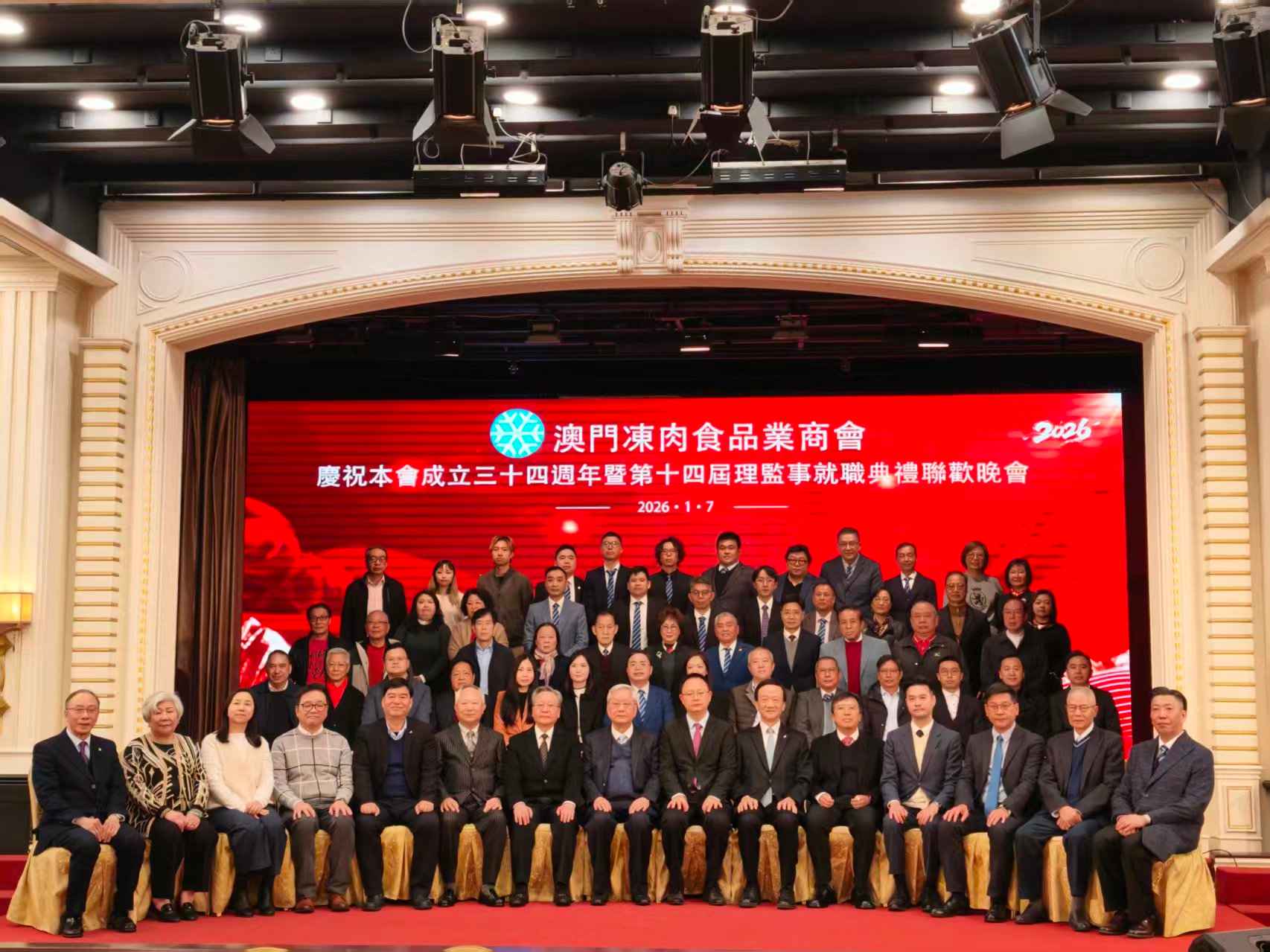 澳門凍肉食品業商會成立三十四周年暨第十四屆理監事就職典禮,昨晚八時在萬豪軒酒家舉行,全國人大常委高開賢、中華總商會理事長馬志毅等政府部門代表及社會各界友好約二百九十人出席,新一屆商會領層明確表示,會繼續嚴控凍肉冷鏈全流程品質,堅守民生食材供應保障底線。就職典禮上,在高開賢與馬志毅的共同監誓下,會長葉紹文帶領新一屆理監事成員莊嚴宣誓就職。當晚出席的嘉賓還包括中央駐澳聯絡辦公室經濟部副處長楊毅,澳區全...