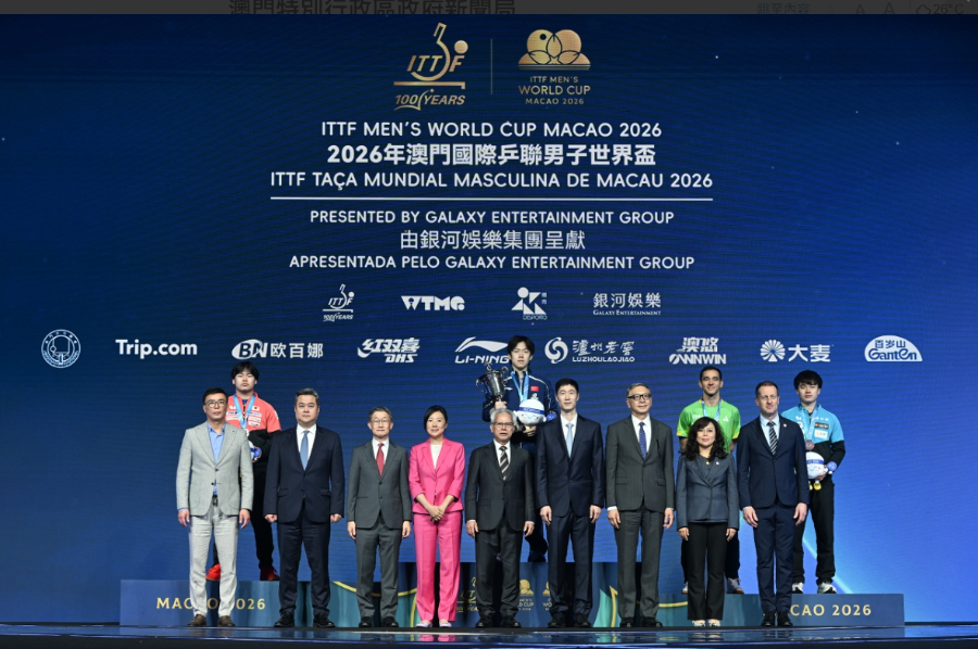 由國際乒乓球聯合會(ITTF)授權,體育局、銀河娛樂集團及世界乒乓球管理集團有限公司主辦、澳門乒乓總會協辦的「2026年澳門國際乒聯男子及女子世界盃 ─ 由銀河娛樂集團呈獻」,5日在銀河綜藝館上演準決賽及冠軍戰,男、女子世界盃冠軍分別由中國王楚欽及孫穎莎奪得。王楚欽孫穎莎稱王封后女子世界盃后冠,由兩位中國球手孫穎莎與王曼昱爭奪。孫穎莎火力全開,連贏三局,及後雖被王曼昱奮起追回一局,但隨即在第五局重...