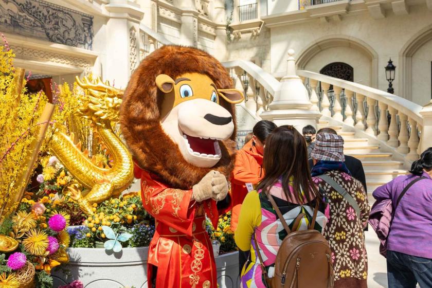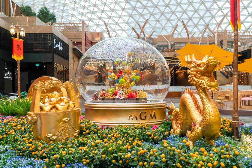 除了參演由澳門旅遊局主辦的賀歲重頭戲「2024年農曆新年花車匯演 - 騰龍運鑽歡樂春節」,澳門美高梅「天幕廣場」以生機勃勃的春裝亮相;美獅美高梅的「視博廣場」則擺放「咬錢獅」雕塑作品及迎春送福拱門,並配襯寓意花開富貴的賀年年花,絕對是新春打卡的好地方!美高梅亦於年初一至初九期間,邀請金獅財神於每日下午二時、四時及六時假「天幕廣場」和「視博廣場」現身賜福,向賓客大派開年幸運小禮物,掀動節慶氣氛!美高梅的賀歲活動精彩紛呈,誠邀各位蒞臨感受節慶氣氛。如欲查詢,歡迎致電(853)8806 8888或瀏覽官方網站。
