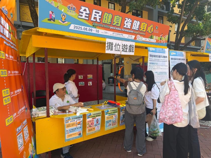 為積極落實“健康社區"計劃推動居民進行規律運動,響應國家8月8日“全民健身日”,以及今年澳門承辦第十五屆全國運動會部份競賽項目,衛生局聯同10個社團機構分別於8月9至10日連續兩天成功舉辦了以“全民健身.強健身心"為主題社區健康諮詢站活動。