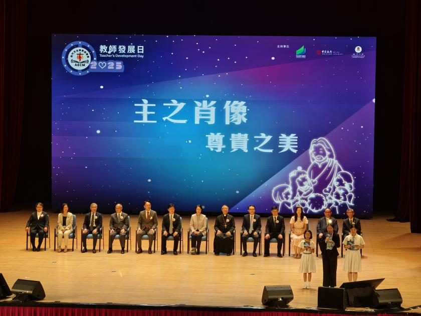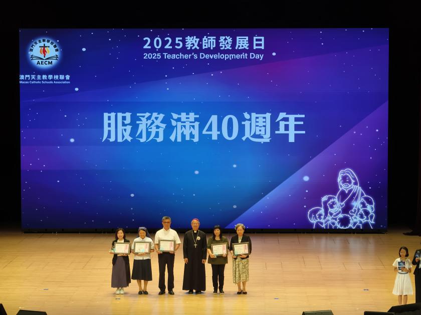 澳門天主教學校聯會於本月十日下午二時半於澳門大學會堂舉行教師發展日活動,三十二名服務滿二十五年至四十五年的資深教師獲嘉許。社會文化司司長柯嵐、中聯辦副主任呂玉印等出席並頒獎。