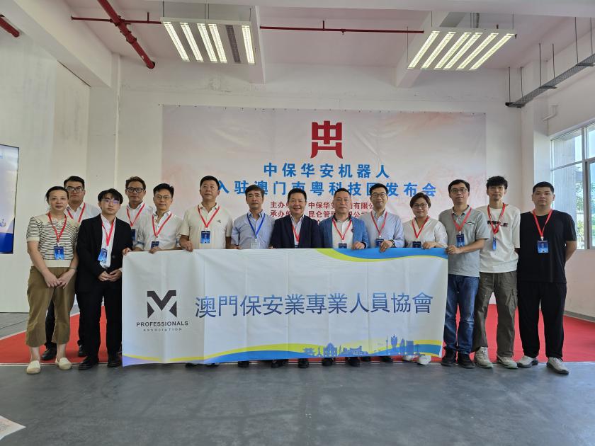 由中保華安集團有限公司主辦,昆侖管理有限公司承辦的「中保華安機器人澳門展示會」,於9月30日早上在澳門南粵科技園舉行,澳門保安業專業人員協會會長梁嘉信及理事長何家文率領協會理監事及會員一行參與,助力同業會員了解及對接前沿高端科技技術。