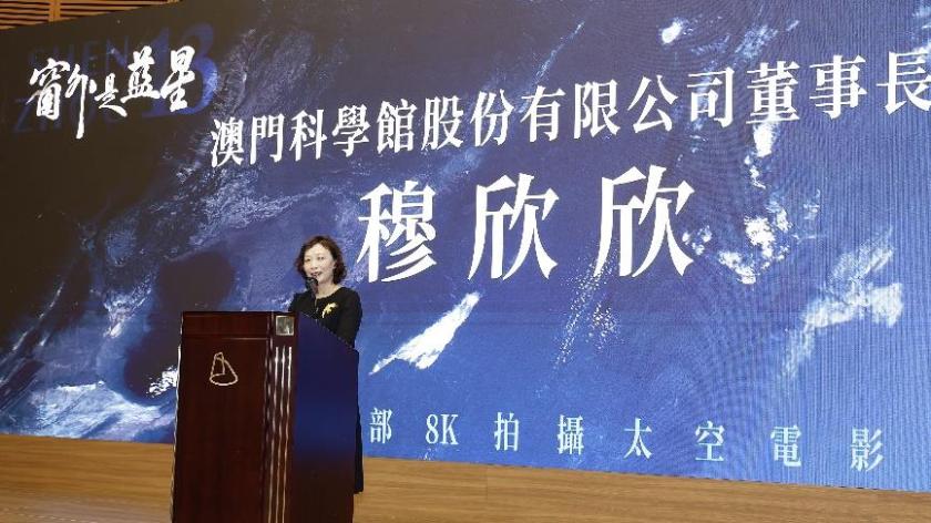 澳門科學館董事長穆欣欣在致辭中表示:今年是中國電影誕生 120 週年,從第一部京劇電影《定軍山》到今天的《窗外是藍星》,印證了藝術與科學總是在山腳下分手,最後又在山頂相遇,文化與 科技的融合,讓科技充滿了溫度。澳門科學館是國家航天活動的重要站點,2021 年科學館的“天宮課 堂”讓澳門學生對宇宙的探索在此萌芽,今天的《窗外是藍星》是電影人繪出的畫,是航天人托起的 夢,在澳門上映更是為我們寫下的詩。中華民族的偉大復興必然包括傳統文化的復興與科技力量的崛起。