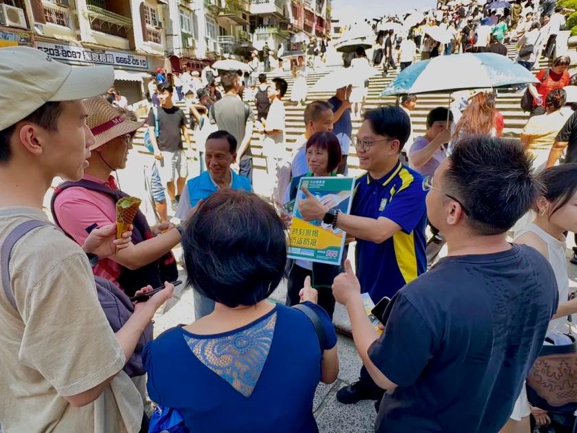 國慶長假期為訪澳旅客的高峰期,各旅遊區人流密集,不法分子往往伺機進行盜竊等犯罪活動。為提高市民及旅客對盜竊罪案的警惕意識與防罪能力,司法警察局派員聯同“司警局大廈防罪之友”成員展開防罪宣傳,向市民及旅客講解防盜須知,以有效預防盜竊案件發生。