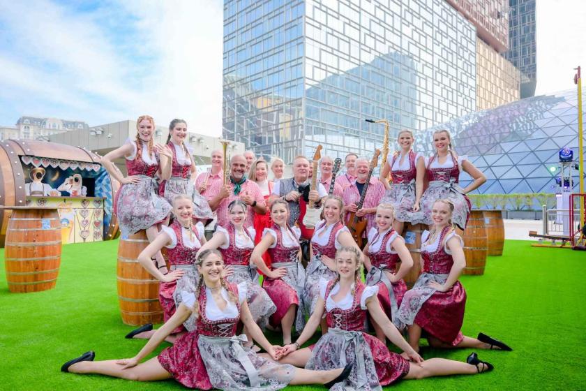 三五知己共聚,美酒必不可少,因此啤酒節特備指定啤酒盧雲堡(Löwenbräu)。美高梅今年更再次邀請從慕尼黑遠道而來的Högl Fun Band樂隊來澳表演助慶,與觀眾一起高歌「美高梅澳門德國啤酒節」的經典原創主題曲《你好,Macau!》。活動並重現慕尼黑啤酒節的經典氛圍——巨型主題帳篷、傳統木製長桌椅,以及身穿德國民族服飾的表演者,讓觀眾彷如親赴德國感受日耳曼風情啤酒慶典。