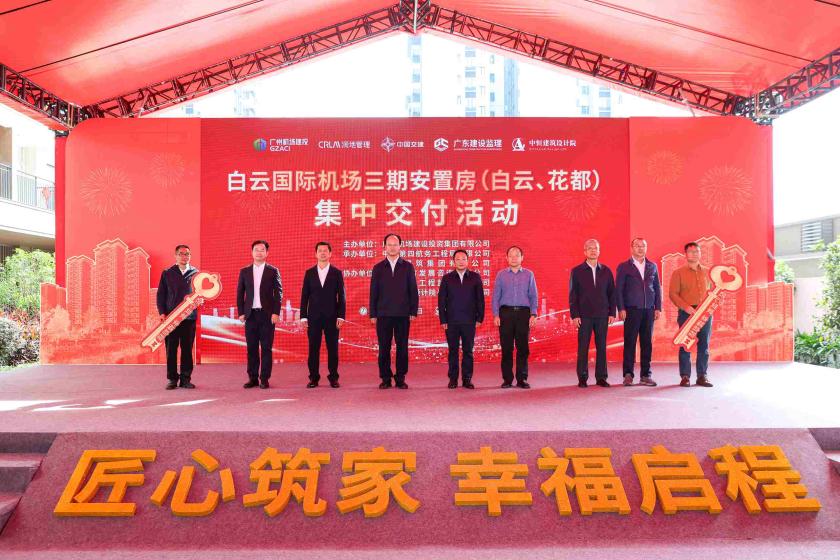 近日,由廣州機場建設投資集團有限公司投資建設的白雲機場三期擴建工程安置區專案,在中交第四航務工程局有限公司(以下簡稱中交四航局)參建的機場三期小㘵-平山二期(首批)安置區舉行集中交付活動。此次集中交付包括花都、白雲兩區的300棟共27781套安置房,回遷群眾喜提“金鑰匙”,實現“居有其屋”到“居有優屋”的幸福跨越。“本次交付是整個機場三期安置區項目迄今為止規模最大、數量最多的一次集中交付,實現了重大工程與民生保障的協同並進,也是機場建投集團5年民生承諾的如期兌現。”廣州機場建設投資集團有限公司黨委書記、董事長周鐵峰提到。