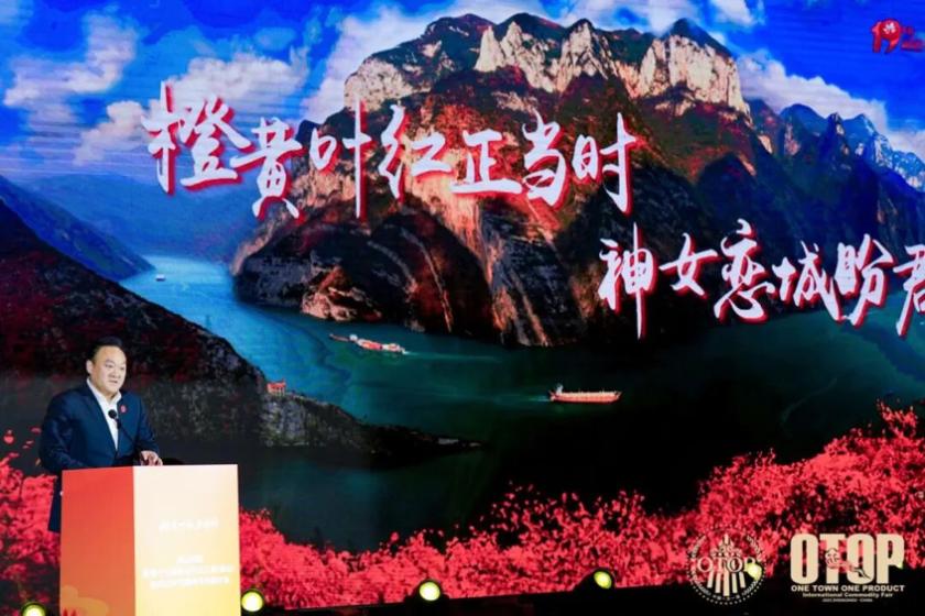 巫山縣委書記曹邦興在致辭中邀請嘉賓體驗巫山紅葉、戀橙、烤魚等特色資源,誠邀客商共用“豫見巫山、橙結良緣”的市場機遇。